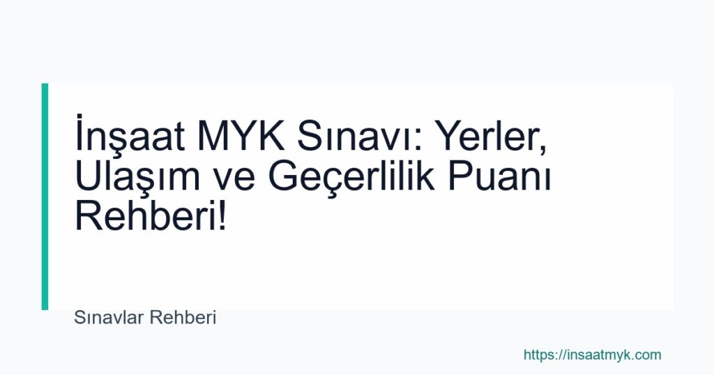 İnşaat MYK Sınavı: Yerler, Ulaşım ve Geçerlilik Puanı Rehberi!