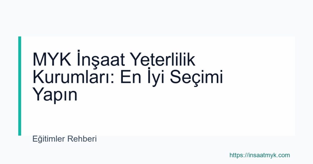 MYK İnşaat Yeterlilik Kurumları: En İyi Seçimi Yapın